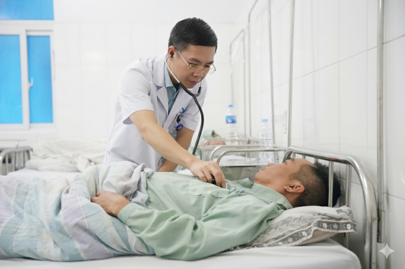 Ths.BS Đỗ Doãn Trọng, Trưởng Khoa Nội tổng hợp, Bệnh viện Bãi Cháy khám tư vấn và điều trị cho bệnh nhân.