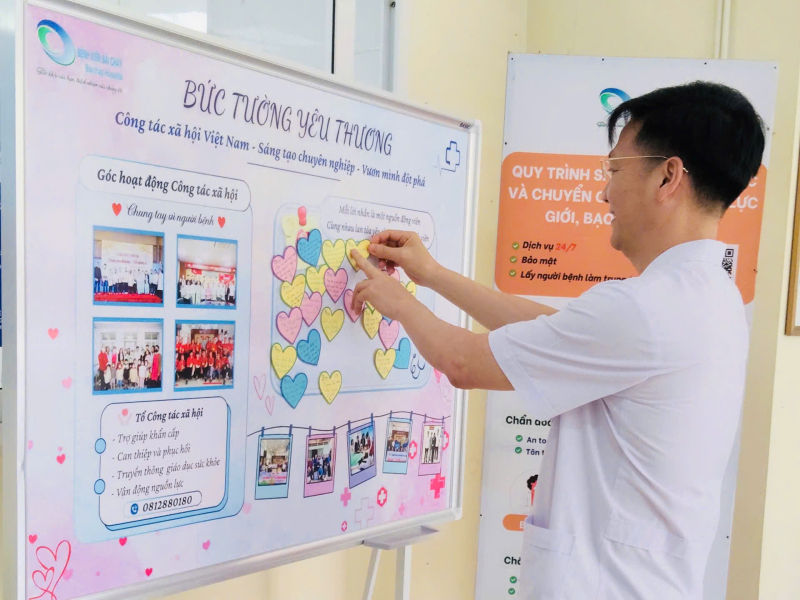 Hướng tới kỷ niệm Ngày Công tác xã hội Việt Nam (25/3) với chủ đề “Công tác xã hội Việt Nam – Sáng tạo chuyên nghiệp – Vươn mình đột phá”, Tổ Công tác xã hội Bệnh viện Bãi Cháy đã triển khai hoạt động “Bức tường yêu thương” – một không gian ý nghĩa dành tặng người bệnh, người nhà và toàn thể cán bộ, nhân viên y tế.