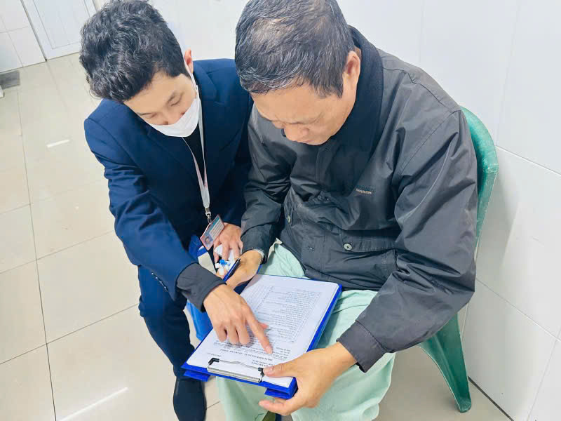 Nhân viên công tác xã hội thực hiện khảo sát mức độ hài lòng của người bệnh về chất lượng khám chữa bệnh