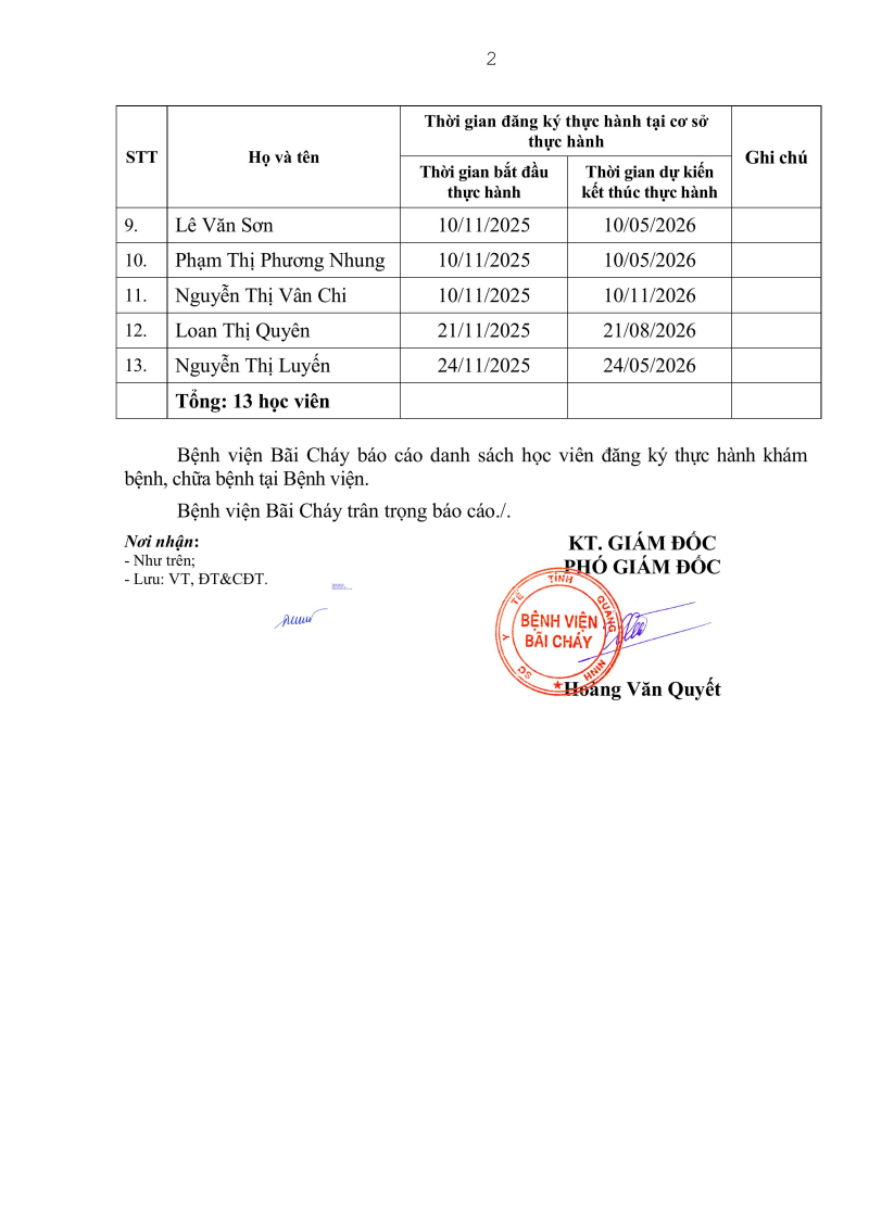 Thông báo 2313 danh sách người đăng ký thực hành khám bệnh, chữa bệnh tháng 11 năm 2025