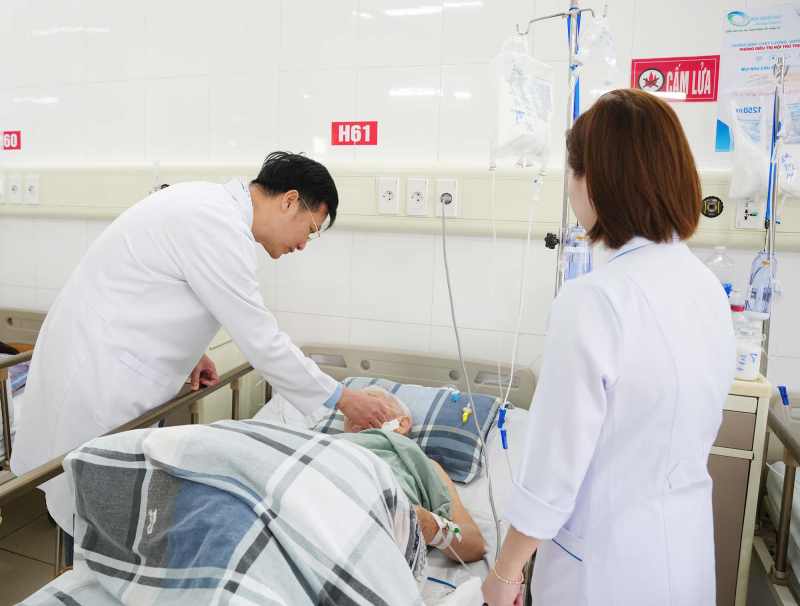 Bác sĩ Nguyễn Văn Dũng - Trưởng Khoa Ung bướu 1, Bệnh viện Bãi Cháy thăm khám cho bệnh nhân