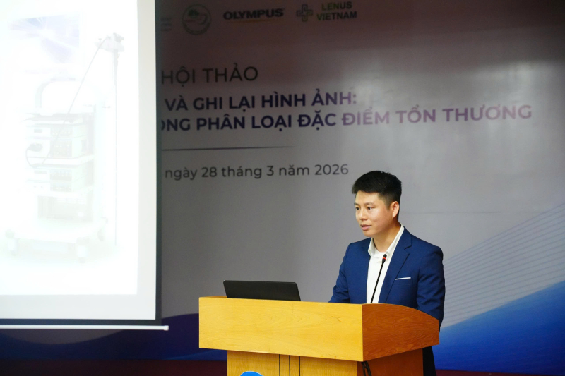BSCKII Nguyễn Ánh Dương - Bệnh viện Bạch Mai báo cáo chuyên đề: “Nhận diện tổn thương nghi ngờ và một số sai sót thường gặp trong chẩn đoán sớm ung thư tiêu hoá” tập trung vào việc nhận diện các dấu hiệu gợi ý ung thư tiêu hóa giai đoạn sớm thông qua đặc điểm màu sắc, cấu trúc bề mặt, vi mạch và ranh giới tổn thương. Đồng thời, chuyên đề chỉ ra những sai sót thường gặp trong thực hành nội soi, tầm quan trọng của việc tuân thủ quy trình nội soi chuẩn hóa, nâng cao kỹ năng quan sát và tăng cường sử dụng các kỹ thuật hỗ trợ nhằm giảm thiểu tỷ lệ bỏ sót, góp phần nâng cao hiệu quả chẩn đoán sớm ung thư tiêu hóa.