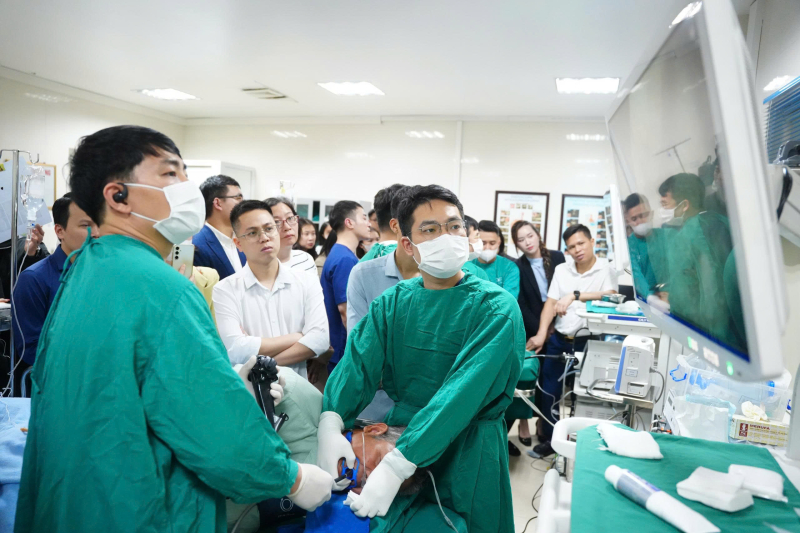 Điểm nhấn nổi bật của chương trình là phiên đào tạo thực hành với sự hướng dẫn trực tiếp của các chuyên gia đầu ngành. Các bác sĩ được tiếp cận kỹ thuật nội soi tiêu hóa trên – dưới, thực hành nhận diện tổn thương qua hình ảnh thực tế và rèn luyện kỹ năng nội soi trên mô hình MIKOTO. Hoạt động này giúp củng cố kỹ năng quan sát, chuẩn hóa quy trình ghi nhận hình ảnh và nâng cao tư duy lâm sàng, góp phần giảm thiểu nguy cơ bỏ sót tổn thương trong thực hành.