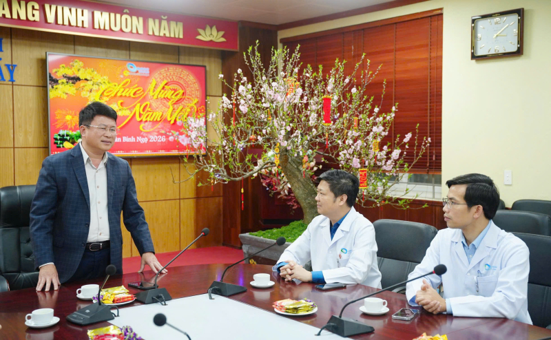 Tiếp đoàn có Ths.BS Trần Thanh Luận - Phó Giám đốc Bệnh viện, BSCKII Hoàng Văn Quyết - Phó Giám đốc Bệnh viện cùng lãnh đạo các khoa, phòng chức năng của bệnh viện. Tại buổi gặp mặt, đồng chí Nguyễn Ngọc Sơn đã gửi lời chúc mừng năm mới an khang, thịnh vượng tới toàn thể cán bộ, y bác sĩ, nhân viên y tế; ghi nhận và biểu dương những nỗ lực, đóng góp quan trọng của Bệnh viện Bãi Cháy trong công tác chăm sóc, bảo vệ sức khỏe nhân dân trên địa bàn tỉnh.