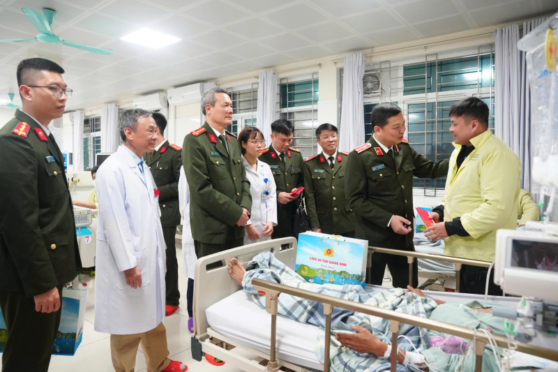 Giám đốc Công an tỉnh Quảng Ninh chúc Tết, tặng quà cho cán bộ y tế và bệnh nhân nằm điều trị nội trú tại Trung tâm Ung bướu, Bệnh viện Bãi Cháy