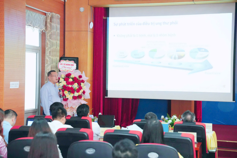 DSCKII Phùng Quang Toàn - Phó trưởng khoa Dược bệnh viện K đã trình bày chuyên đề về “Quản lý điều trị EGFR – TKI trong ung thư phổi ở một số nhóm đối tượng đặc biệt”.