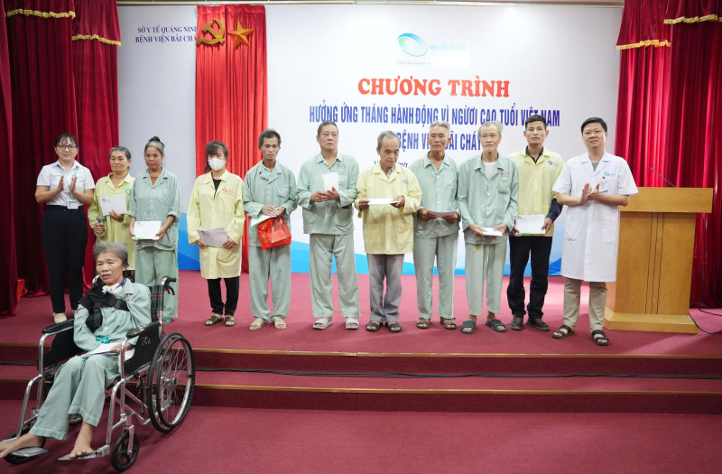 Nhân dịp này, Bệnh viện Bãi Cháy đã phối hợp với các đoàn thiện nguyện Hoa Hướng Dương và Thiện Tâm Hoa Sen trao tặng 20 suất quà với tổng trị giá 10 triệu đồng cho người cao tuổi có hoàn cảnh đặc biệt đang điều trị tại bệnh viện.