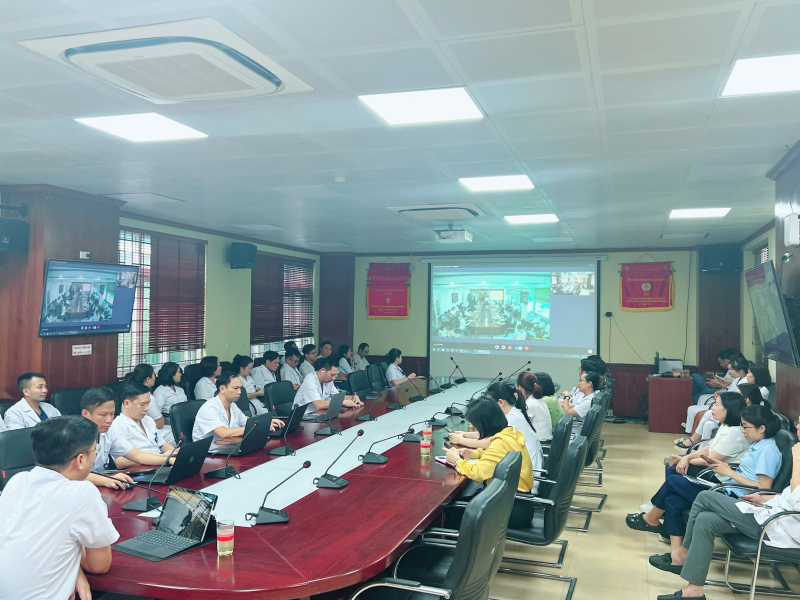 Dự tại điểm cầu Bệnh viện Bãi Cháy có Ths.BS Trần Thanh Luận - Phó Giám đốc Bệnh viện; BSCKI Hoàng Đình Thành - Phó Giám đốc Bệnh viện; Lãnh đạo chủ chốt các khoa, phòng của Bệnh viện và lãnh đạo Trạm Y tế một số phường trên địa bàn lân cận.
