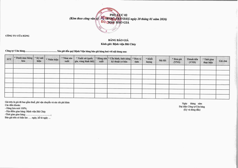 Thông báo 116 mua sắm vật tư tiêu hao tại Bệnh viện Bãi Cháy năm 2025 2026/01/20 09:27 Thông báo 116 mua sắm vật tư tiêu hao tại Bệnh viện Bãi Cháy năm 2025