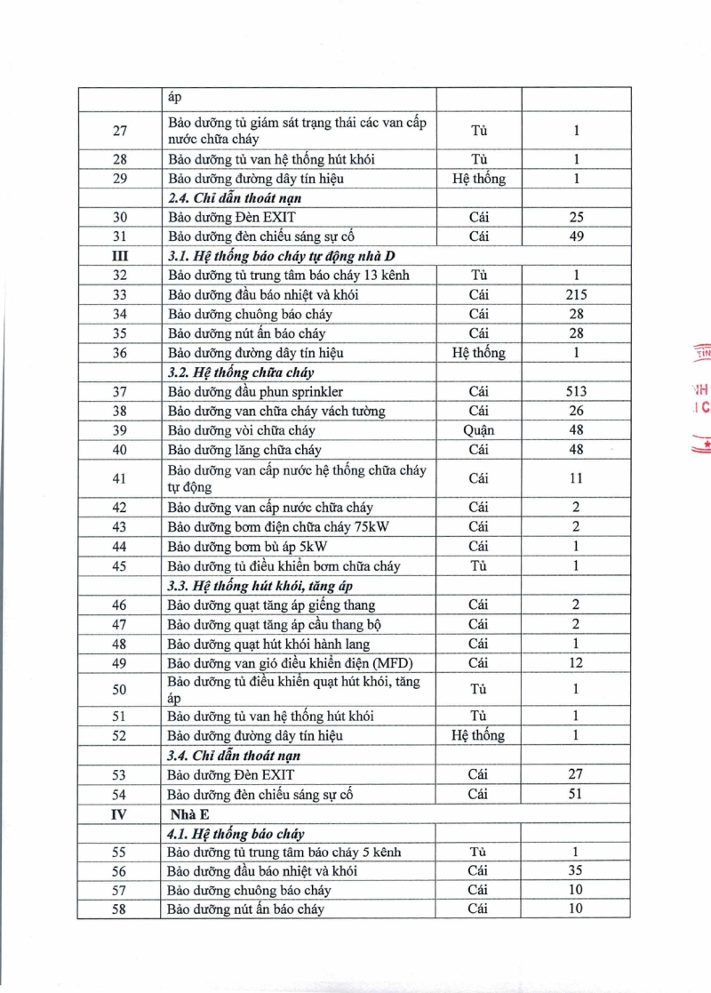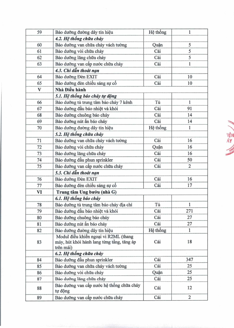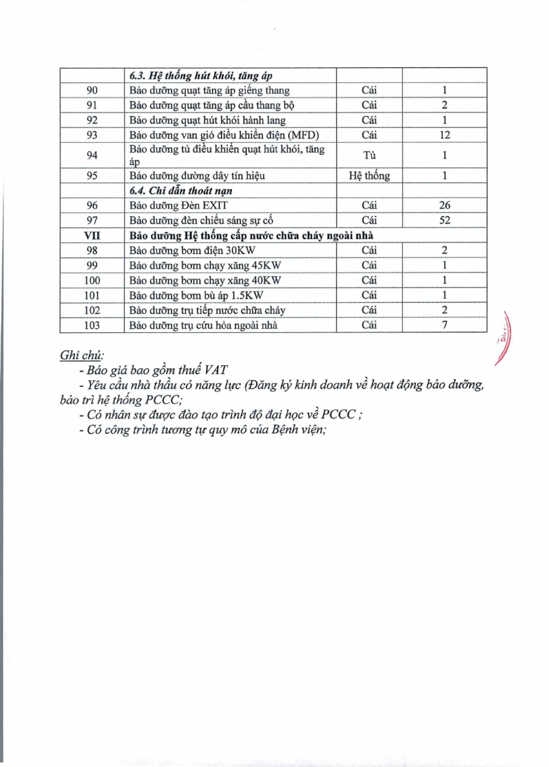 Thông báo 1731 nhu cầu thuê bảo dưỡng định kỳ các trang thiết bị phòng cháy chữa cháy