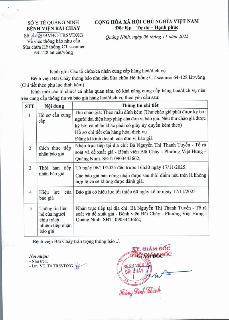 Thông báo 2085 nhu cầu sửa chữa hệ thống CT scanner Hôm nay 08:31 Thông báo 2085 nhu cầu sửa chữa hệ thống CT scanner