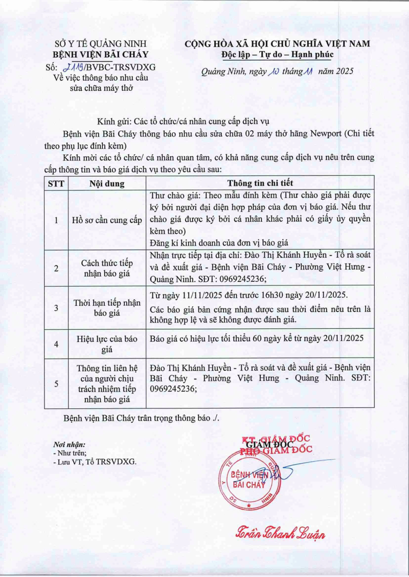 Thông báo 2160 nhu cầu sửa chữa 02 dây nội soi Olympus 2025/11/13 09:29 Thông báo 2160 nhu cầu sửa chữa 02 dây nội soi Olympus