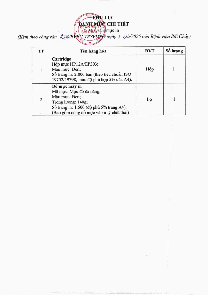 Thông báo 2330 nhu cầu mua sắm mực in