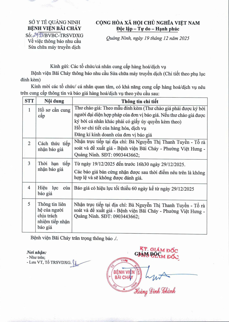 Thông báo 2493 nhu cầu sửa chữa máy truyền dịch 2025/12/19 04:11 Thông báo 2493 nhu cầu sửa chữa máy truyền dịch