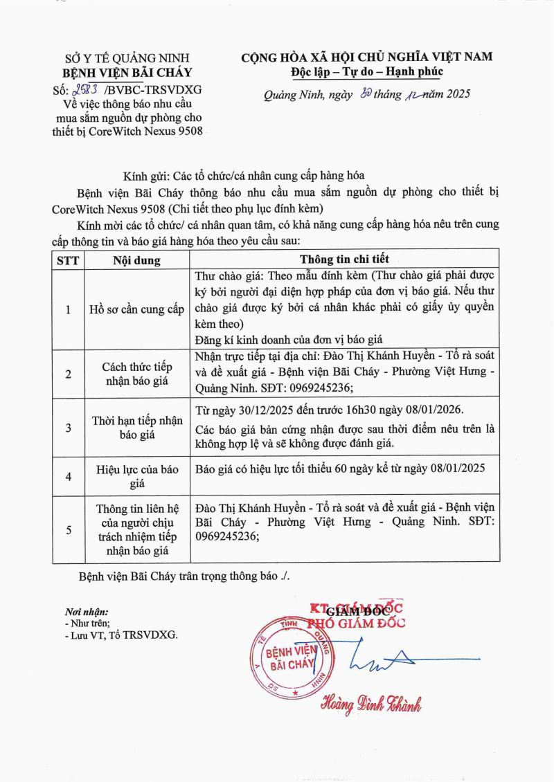 Thông báo 2583 nhu cầu mua sắm nguồn dự phòng cho thiết bị 2025/12/30 08:41 Thông báo 2583 nhu cầu mua sắm nguồn dự phòng cho thiết bị