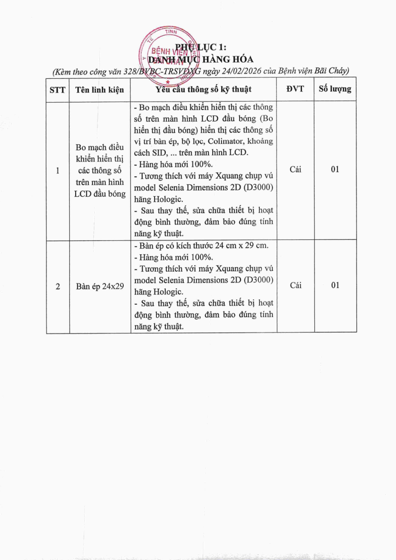Thông báo 328 mua sắm linh kiện sửa chữa máy xquang chụp vú hãng Hologic 2026/02/24 07:31 Thông báo 328 mua sắm linh kiện sửa chữa máy xquang chụp vú hãng Hologic