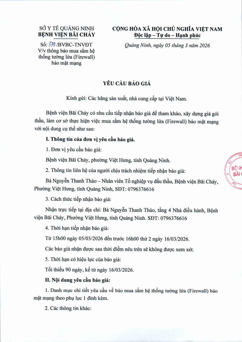 Thông báo 379 mua sắm hệ thống tường lửa (Firewall) bảo mật trang 2026/03/05 08:01 Thông báo 379 mua sắm hệ thống tường lửa (Firewall) bảo mật trang