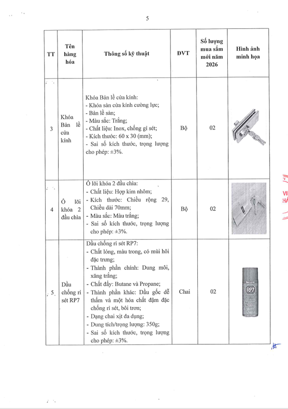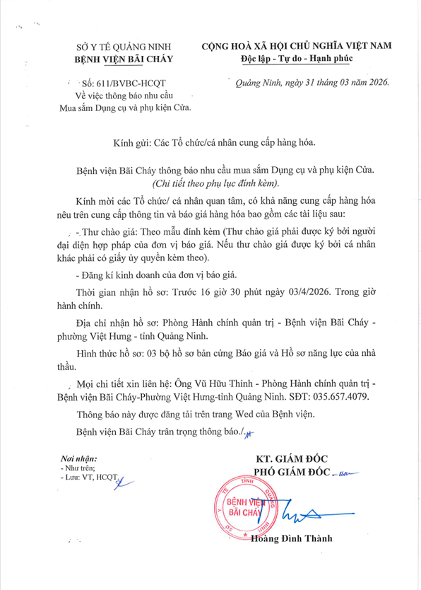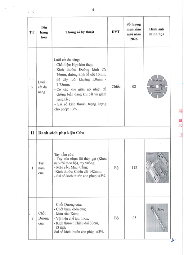 Thông báo 611 nhu cầu mua sắm dụng cụ và phụ kiện cửa