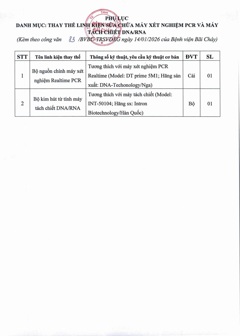 Thông báo 83 nhu cầu thay thế linh kiện sửa chữa máy xét nghiệm