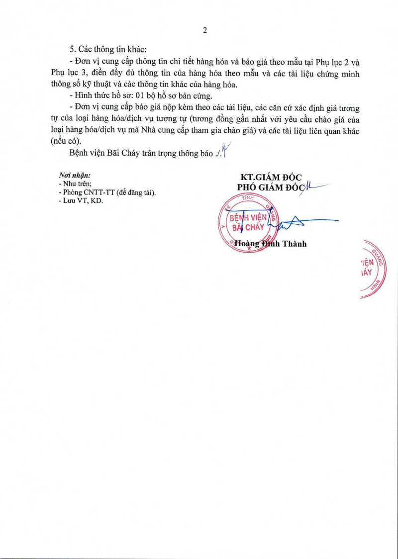 Thông báo số 1912 về nhu cầu sửa chữa, bảo dưỡng và thay thế hệ thống điều trị ô xy cao áp