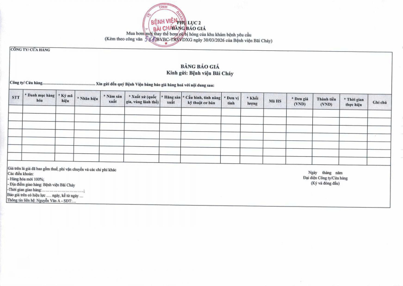 Thông báo số 588 về nhu cầu mua bơm mới thay thế bơm cũ hỏng khu khám bệnh yêu cầu