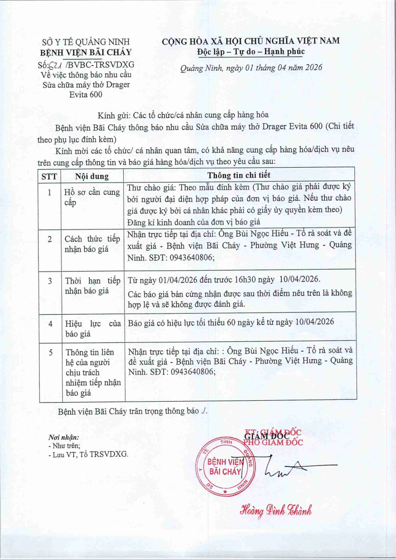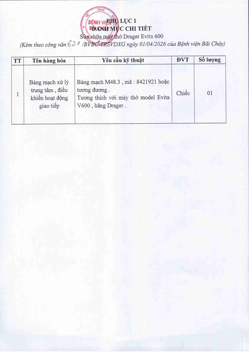 Thông báo số 621 về nhu cầu sửa chữa máy thở Drager Evita 600