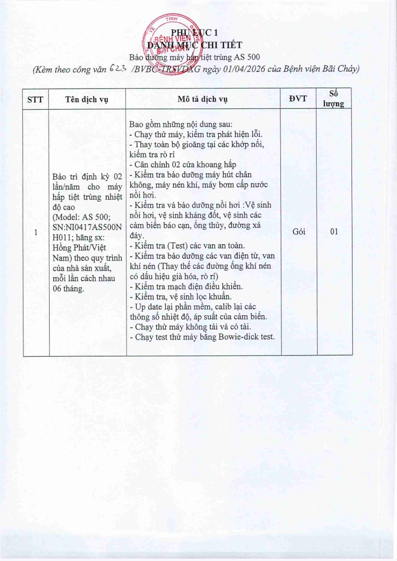 Thông báo số 623 về nhu cầu bảo dưỡng định kỳ máy hấp tiệt trùng AS 500