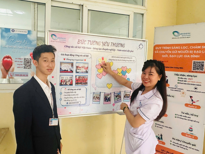 Hướng tới kỷ niệm Ngày Công tác xã hội Việt Nam (25/3) với chủ đề “Công tác xã hội Việt Nam – Sáng tạo chuyên nghiệp – Vươn mình đột phá”, Tổ Công tác xã hội Bệnh viện Bãi Cháy đã triển khai hoạt động “Bức tường yêu thương” – một không gian ý nghĩa dành tặng người bệnh, người nhà và toàn thể cán bộ, nhân viên y tế.