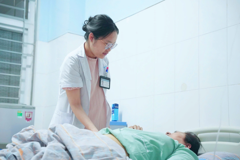 Bác sĩ Nguyễn Phạm Thu Phương khám lại cho bệnh nhân sau phẫu thuật.