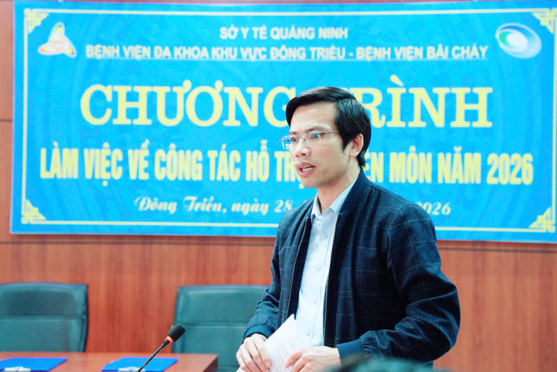 Thực hiện sự chỉ đạo của Sở Y tế Quảng Ninh về việc phân công nhiệm vụ hỗ trợ, chỉ đạo chuyên môn kỹ thuật đối với các đơn vị y tế công lập trên địa bàn tỉnh năm 2026, chiều ngày 28/01/2026, Bệnh viện Bãi Cháy đã cử đoàn công tác đến làm việc, khảo sát và thống nhất nội dung hỗ trợ chuyên môn cho Bệnh viện Đa khoa khu vực Đông Triều.