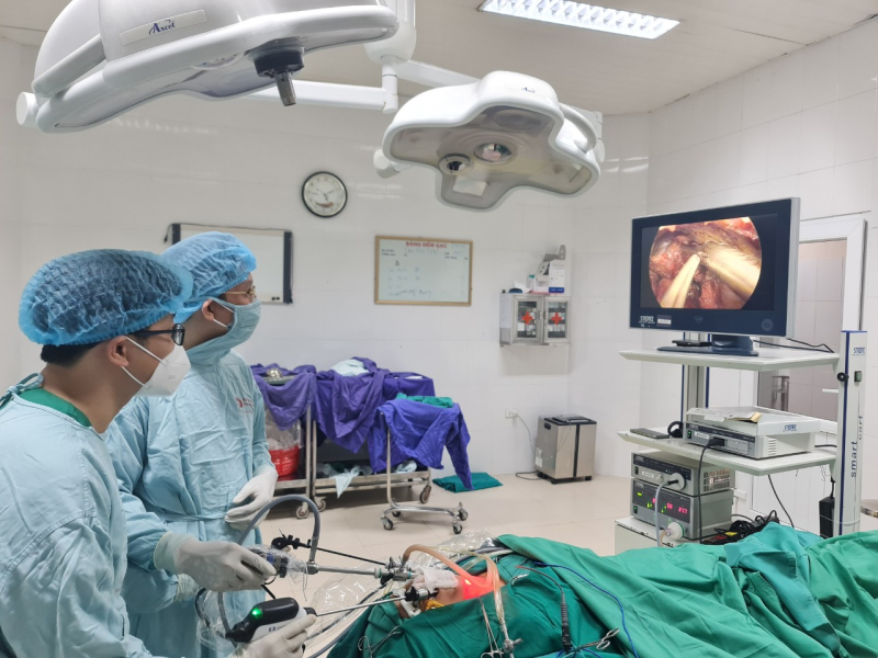 Bệnh nhân Hoàng T H (31 tuổi, trú tại TP Hạ Long, Quảng Ninh) tình cờ phát hiện u tuyến giáp thùy trái kích thước 5mmm kèm sinh thiết có tế bào ung thư khi khám sức khỏe định kỳ. Trước đó, bệnh nhân không có biểu hiện bệnh lý về tuyến giáp như đau, ho, khó thở, khàn tiếng, cảm giác nuốt vướng, sụt cân…Sau khi thăm khám, hội chẩn, tư vấn phương pháp điều trị cho bệnh nhân, dưới sự hướng dẫn của chuyên gia từ Bệnh viện K Trung ương, cùng với hệ thống trang thiết bị phẫu thuật nội soi hiện đại, ekip mổ do đội ngũ bác sĩ Khoa ung bướu 2, Trung tâm Ung bướu, Bệnh viện Bãi Cháy đã tiến hành phẫu thuật nội soi cắt u tuyến giáp qua đường miệng cho bệnh nhân.