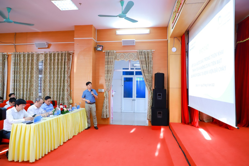 ThS.BS Trần Thanh Luận báo cáo kết quả triển khai thanh toán không dùng tiền mặt QR động.