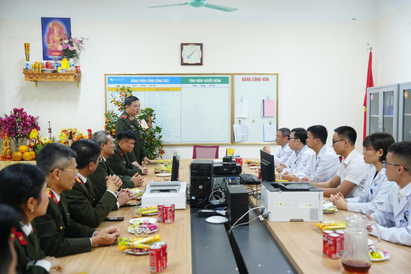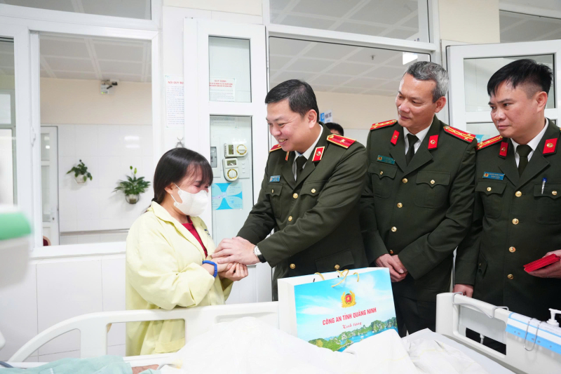 Giám đốc Công an tỉnh Quảng Ninh chúc Tết, tặng quà cho cán bộ y tế và bệnh nhân nằm điều trị nội trú tại Trung tâm Ung bướu, Bệnh viện Bãi Cháy
