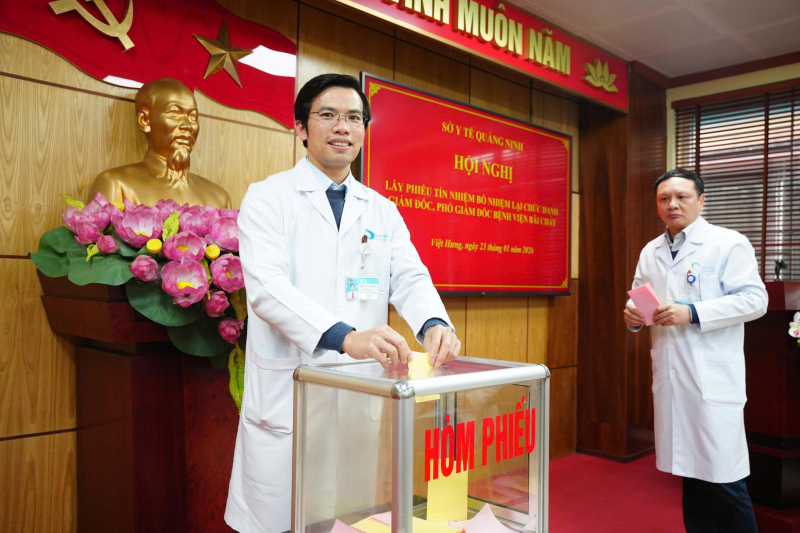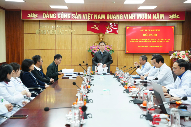 Chiều ngày 23/01/2026, Bệnh viện Bãi Cháy tổ chức Hội nghị lấy phiếu tín nhiệm trong quy trình bổ nhiệm lại chức danh Giám đốc và Phó Giám đốc Bệnh viện Bãi Cháy theo quy định hiện hành. Hội nghị do đồng chí Bùi Mạnh Hùng – Quyền Giám đốc Sở Y tế Quảng Ninh chủ trì.