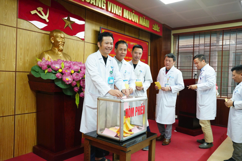 Tại hội nghị, các đại biểu đã tiến hành lấy phiếu tín nhiệm đối với Thầy thuốc Nhân dân, BSCKII Lê Ngọc Dũng – Giám đốc Bệnh viện Bãi Cháy và Ths.BS Trần Thanh Luận – Phó Giám đốc Bệnh viện Bãi Cháy theo đúng trình tự, quy trình, bảo đảm dân chủ, khách quan, công khai và minh bạch.