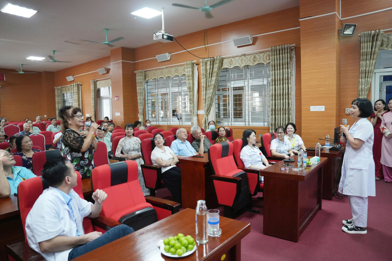 Tham dự buổi truyền thông có Ths.BS Trần Thanh Luận – Phó Giám đốc Bệnh viện, lãnh đạo các khoa, phòng chuyên môn, cán bộ và hội viên Hội người cao tuổi phường Việt Hưng cùng hơn 150 người bệnh cao tuổi đang điều trị nội trú, ngoại trú tại Bệnh viện.