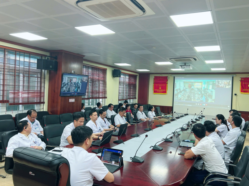 Tham gia trực tuyến tại điểm cầu Bệnh viện Bãi Cháy có Ths.BS Trần Thanh Luận, Phó Giám đốc Bệnh viện; BSCKI Hoàng Đình Thành, Phó Giám đốc Bệnh viện; lãnh đạo các khoa, phòng Bệnh viện và Trưởng trạm Y tế một số phường trên địa bàn thành phố Hạ Long.
