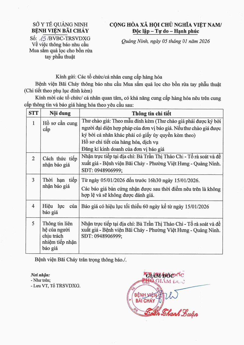 Thông báo 15 mua sắm quả lọc cho bồn rửa tay phẫu thuật 2026/01/05 09:26 Thông báo 15 mua sắm quả lọc cho bồn rửa tay phẫu thuật