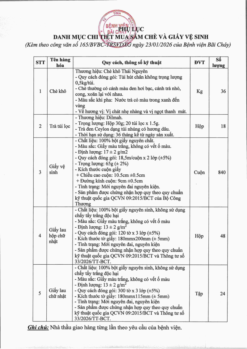Thông báo 165 về mua sắm chè và giấy vệ sinh năm 2026 2026/01/23 09:58 Thông báo 165 về mua sắm chè và giấy vệ sinh năm 2026