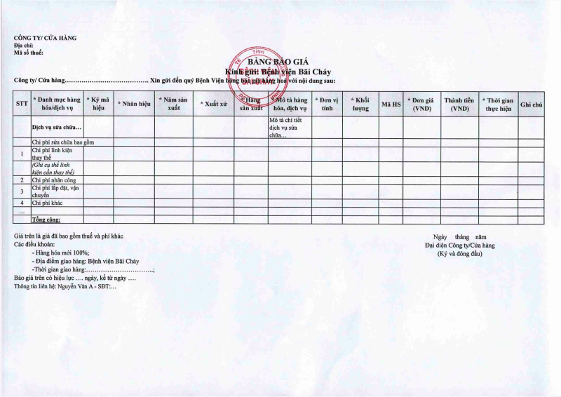 Thông báo 2094 nhu cầu mua sắm các bao đo huyết áp
