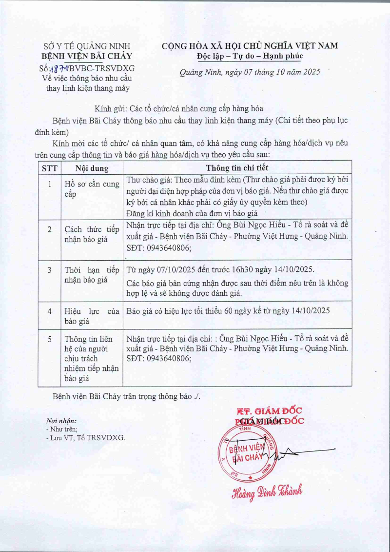 Thông báo 1871 nhu cầu thay linh kiện thang máy 2025/10/07 08:18 Thông báo 1871 nhu cầu thay linh kiện thang máy