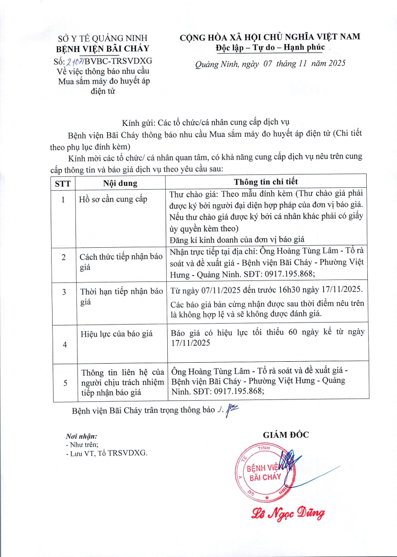 Thông báo 2107 nhu cầu mua sắm máy đo huyết áp điện tử 2025/11/07 09:36 Thông báo 2107 nhu cầu mua sắm máy đo huyết áp điện tử