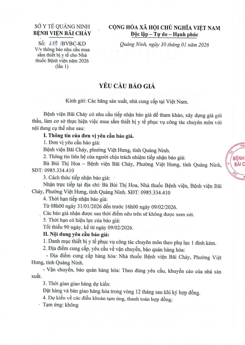 Thông báo 219 nhu cầu mua sắm thiết bị cho Nhà thuốc năm 2026 2026/01/31 03:00 Thông báo 219 nhu cầu mua sắm thiết bị cho Nhà thuốc năm 2026File đính kèm: Thông báo 219