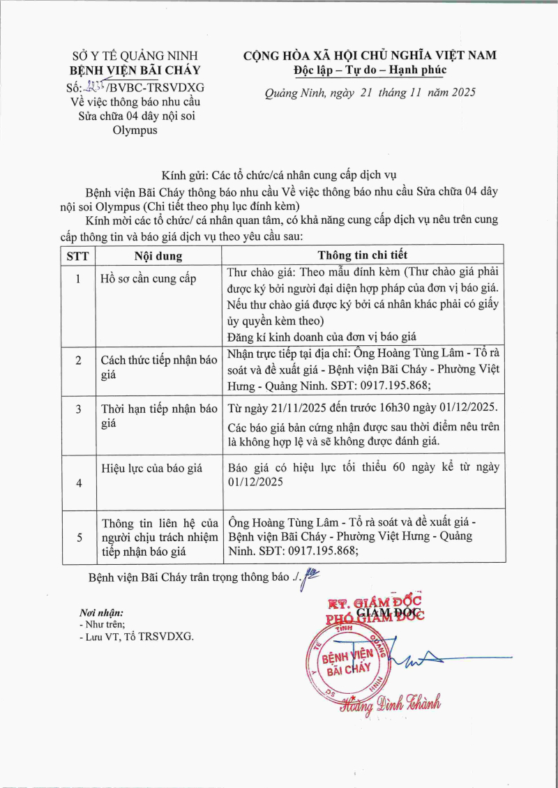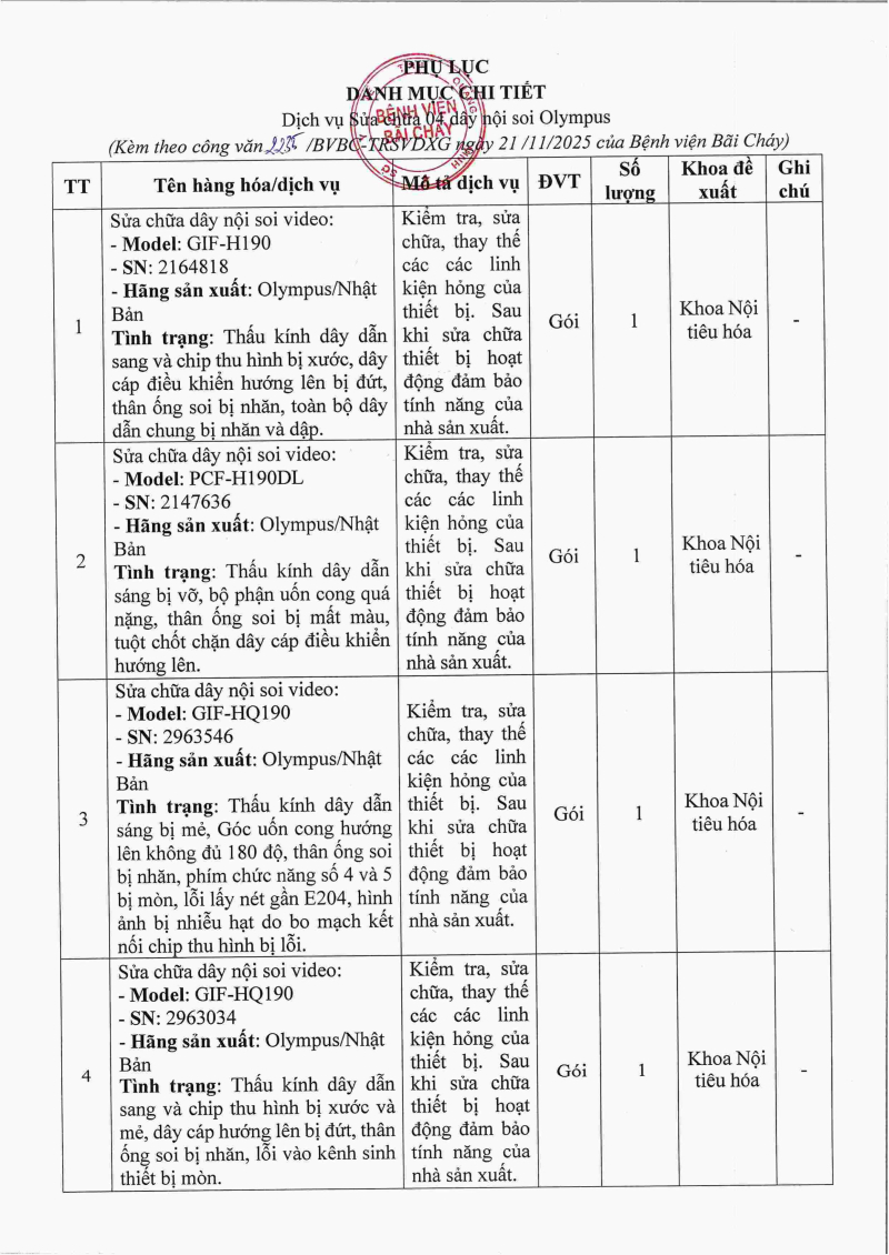 Thông báo 2235 nhu cầu sửa chữa 04 dây nội soi Olympus Hôm nay 08:21 Thông báo 2235 nhu cầu sửa chữa 04 dây nội soi Olympus