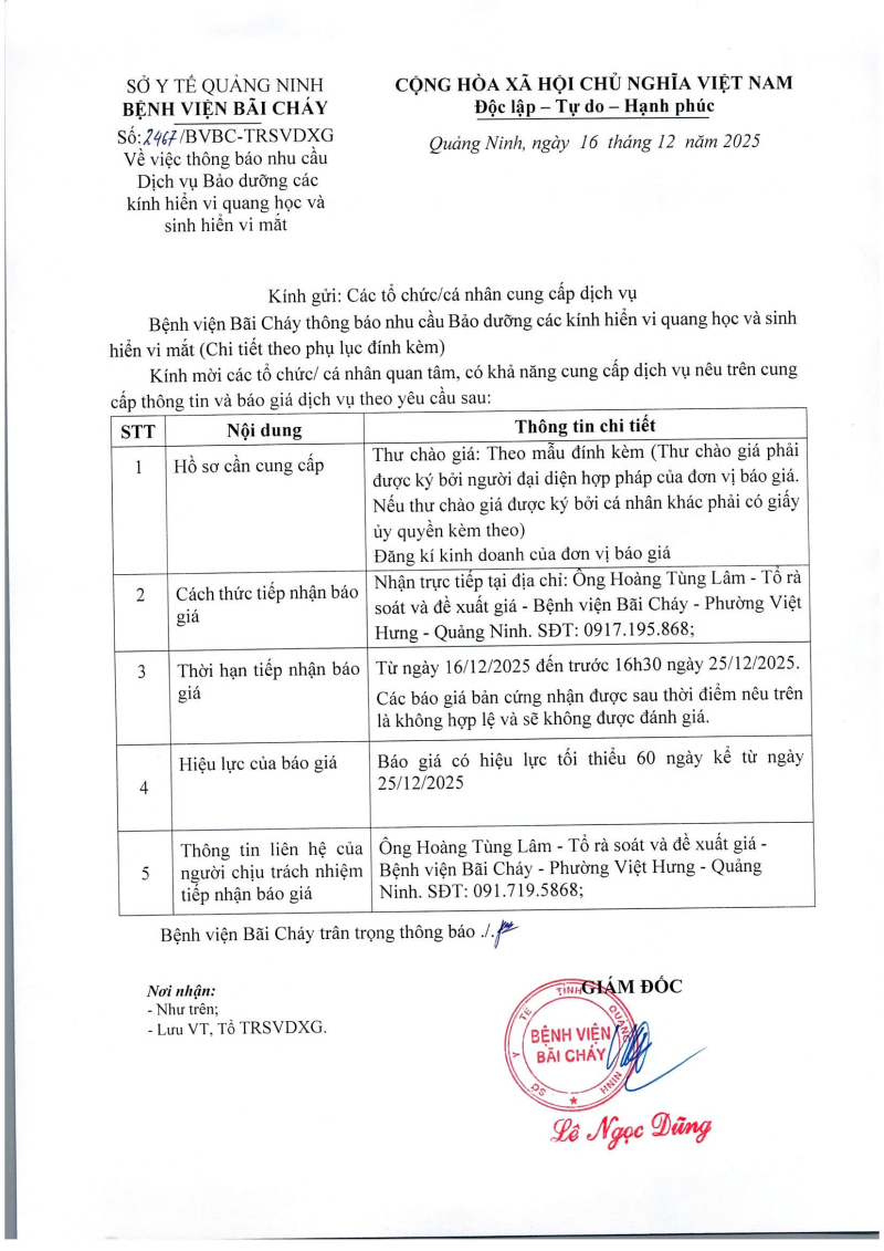 Thông báo 2467 nhu cầu dịch vụ bảo dưỡng các kính hiển vi quang học và sinh hiển vi mắt