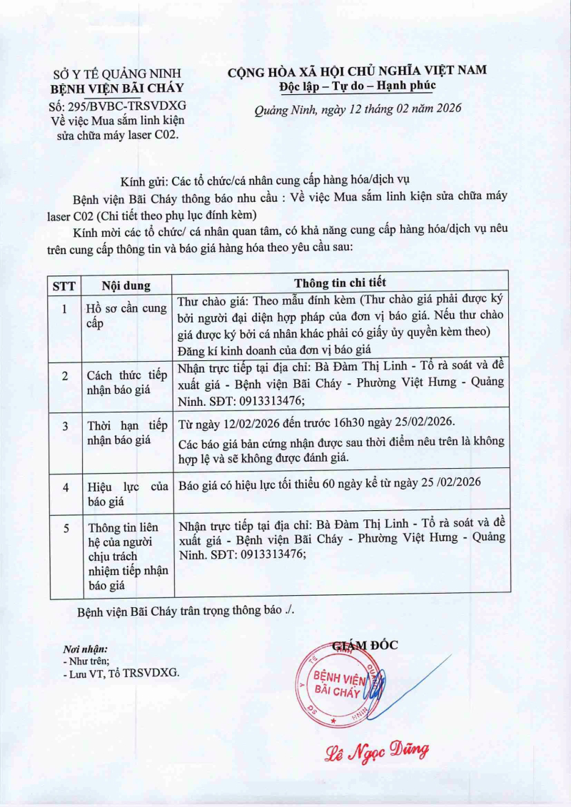 Thông báo 295 mua sắm linh kiện sửa chữa máy laser CO2 Hôm nay 07:33 Thông báo 295 mua sắm linh kiện sửa chữa máy laser CO2