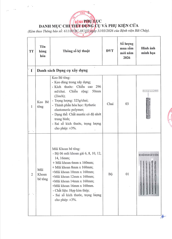 Thông báo 611 nhu cầu mua sắm dụng cụ và phụ kiện cửa