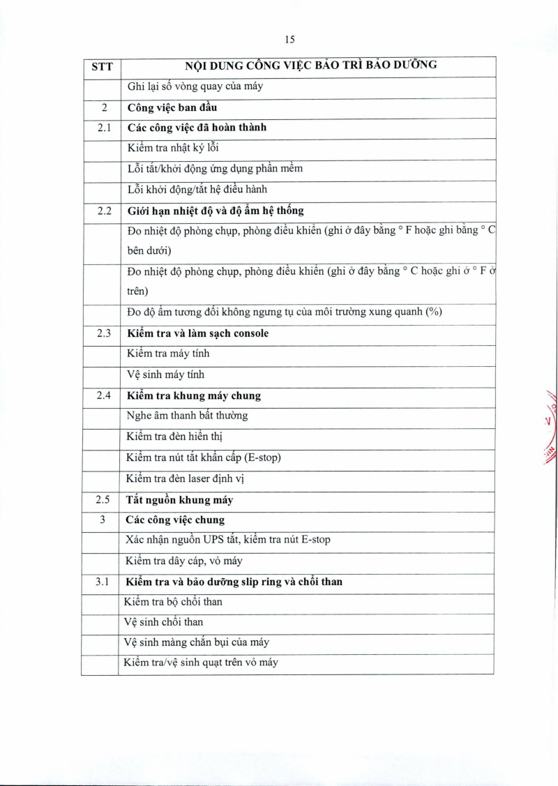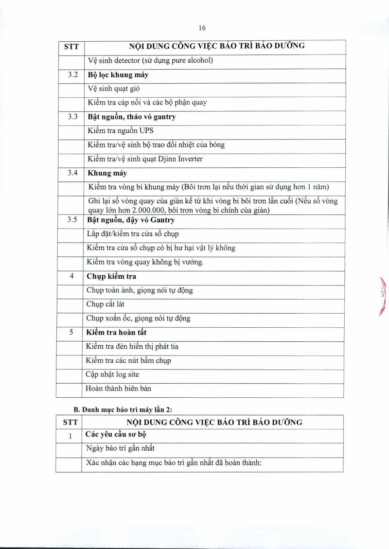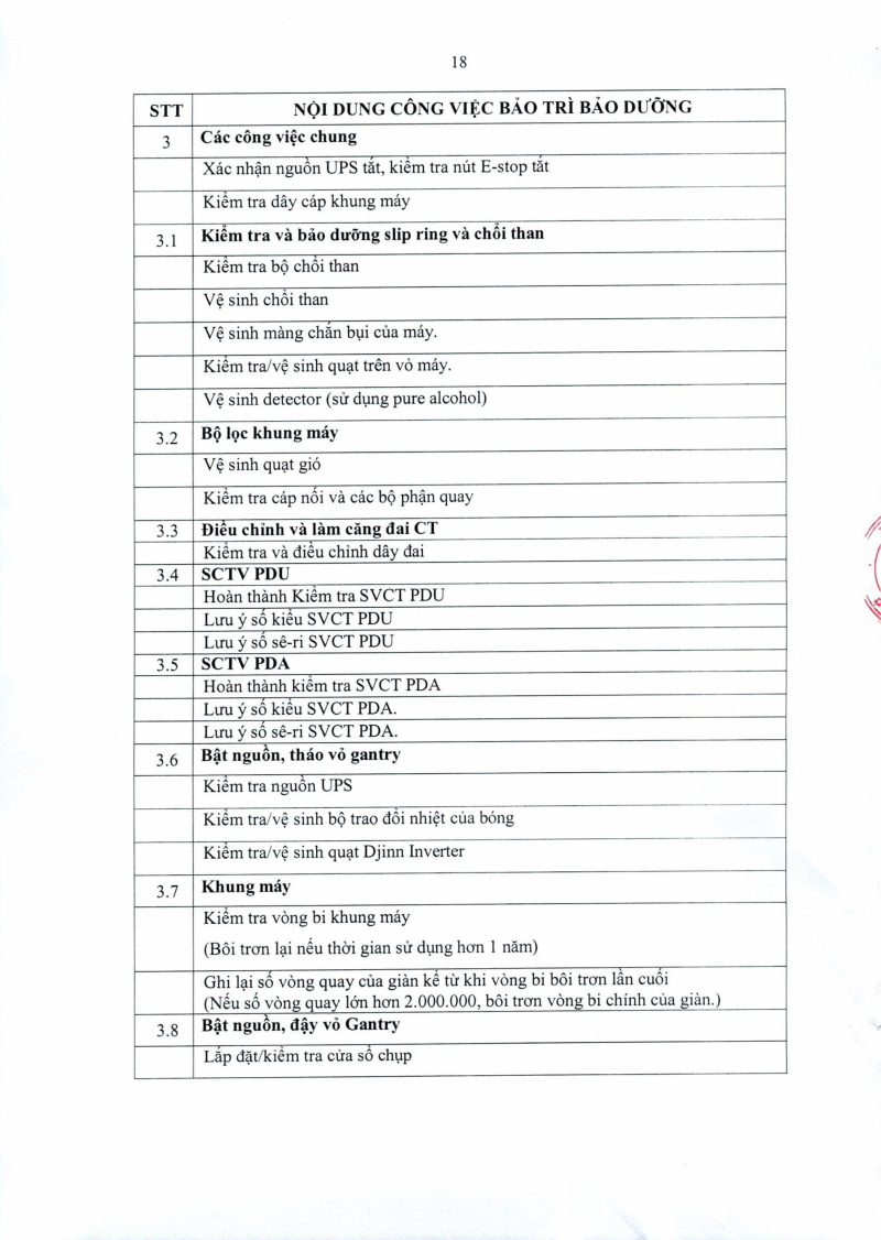 Thông báo số 1861 về nhu cầu bão dưỡng các trang thiết bị chẩn đoán hình ảnh