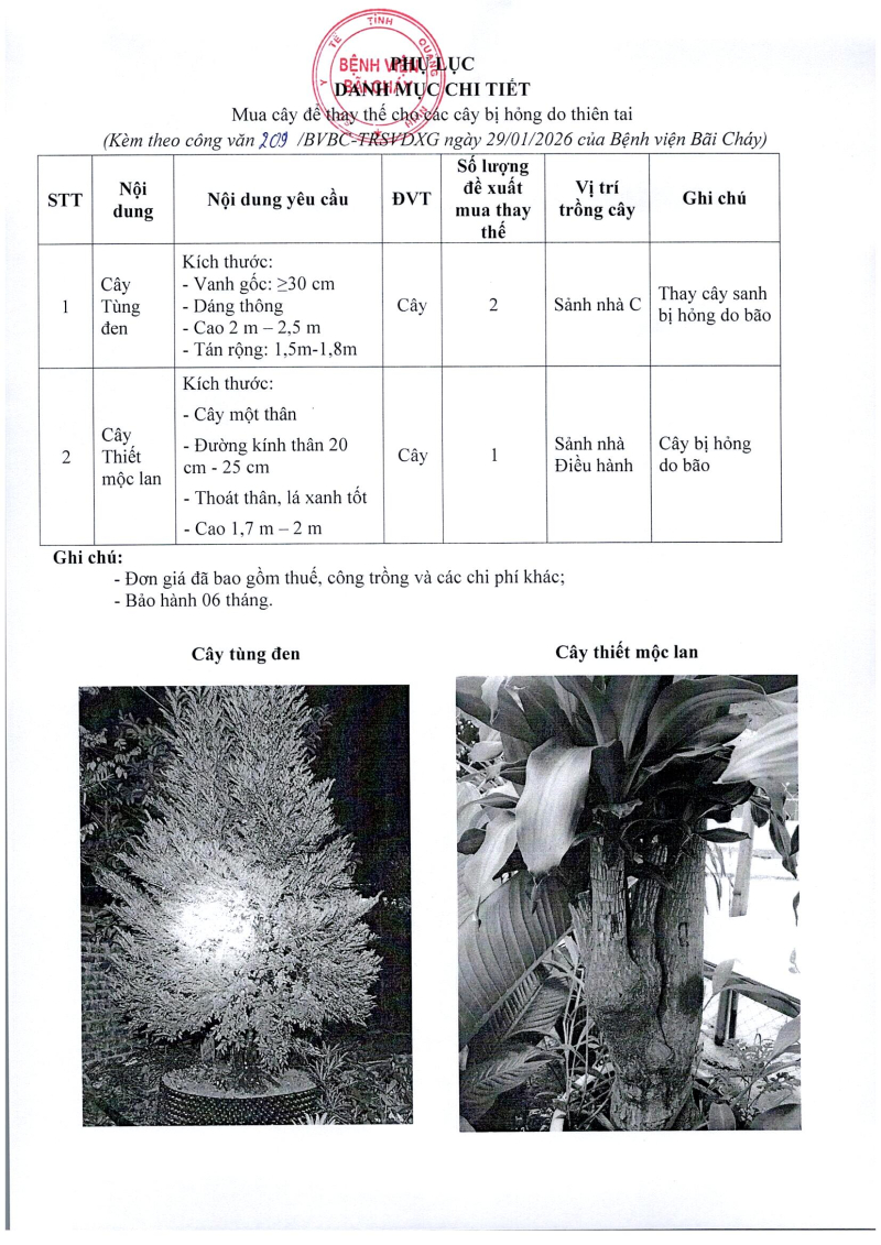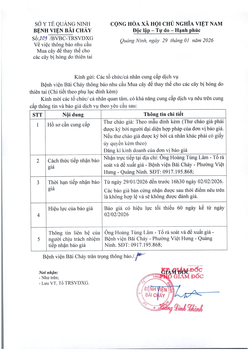 Thông báo số 209 về nhu cầu mua cây để thay thế cho các cây bị hỏng do thiên tai