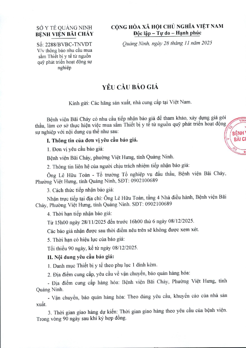 Thông báo số 2288 về nhu cầu mua sắm thiết bị từ nguồn quỹ phát triển hoạt động sự nghiệp Hôm nay 09:28